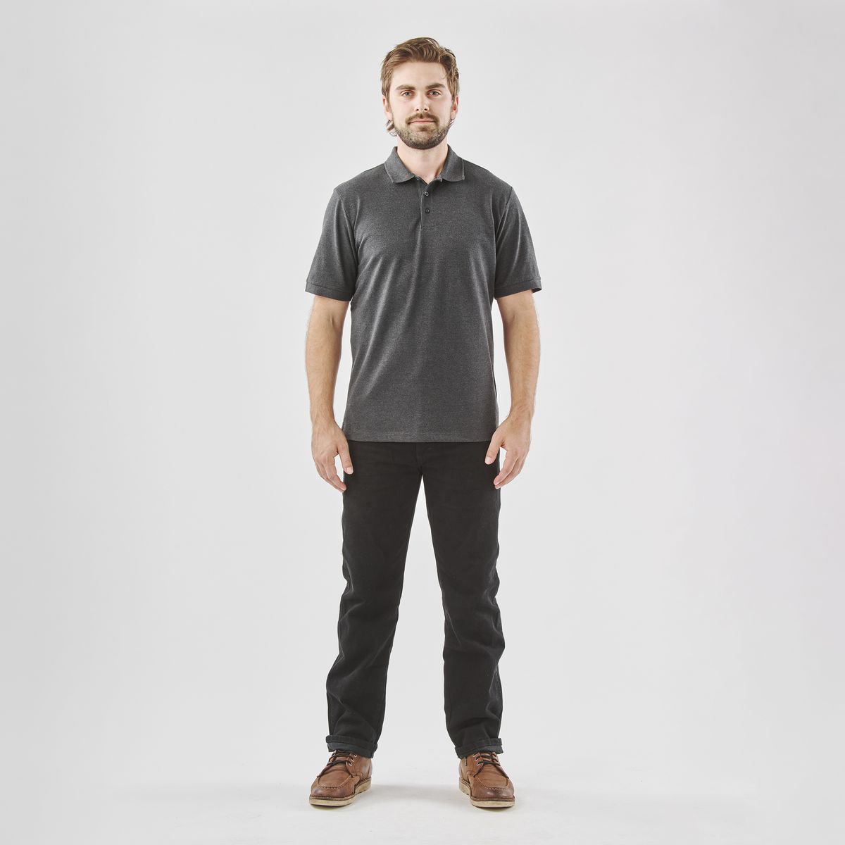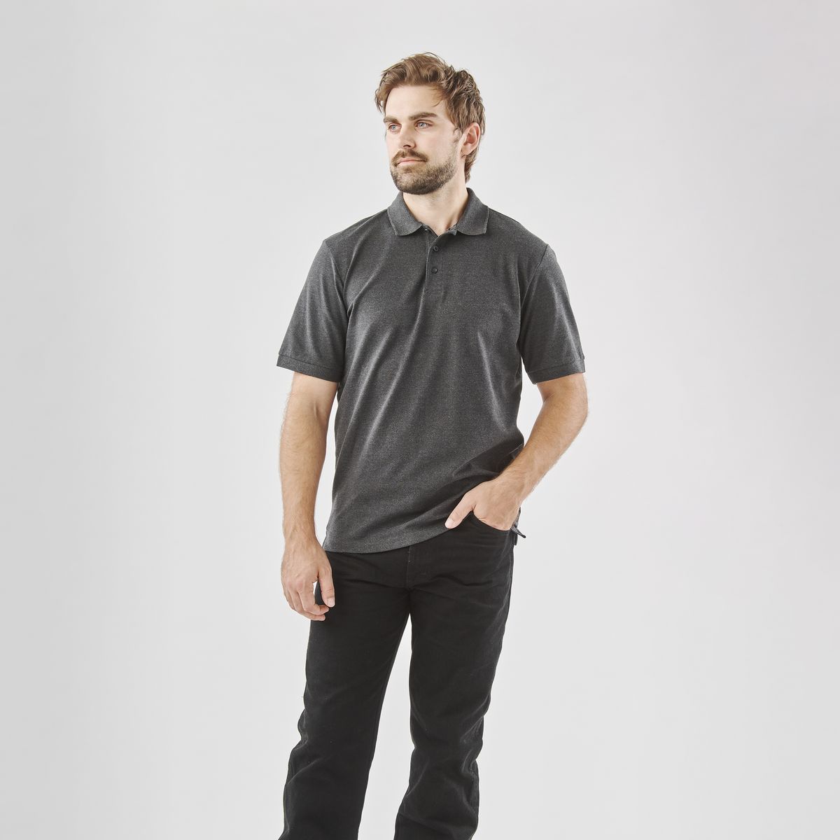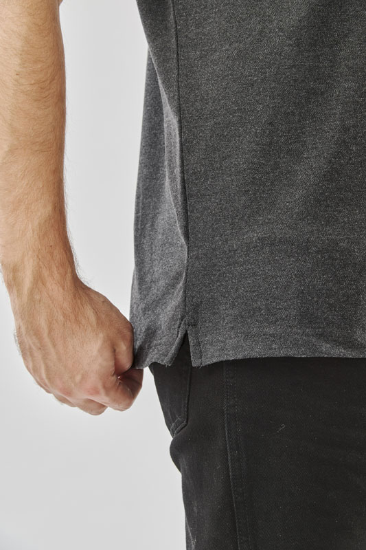 Description: Hardwearing stretch pique construction 95% Cotton/5% Spandex, button placket polo. Side slits at the hem provide a regular fit, while the pill resistant fabric leaves the garment looking newer for longer.